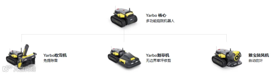 图源:Yarbo2022年推出的“1+N”模块化主机设计,可适配扫雪、割草、吹树叶等20余种功能,覆盖四季庭院维护需求,不仅大幅提升了产品的性价比,还显著增强了用户的复购意愿。