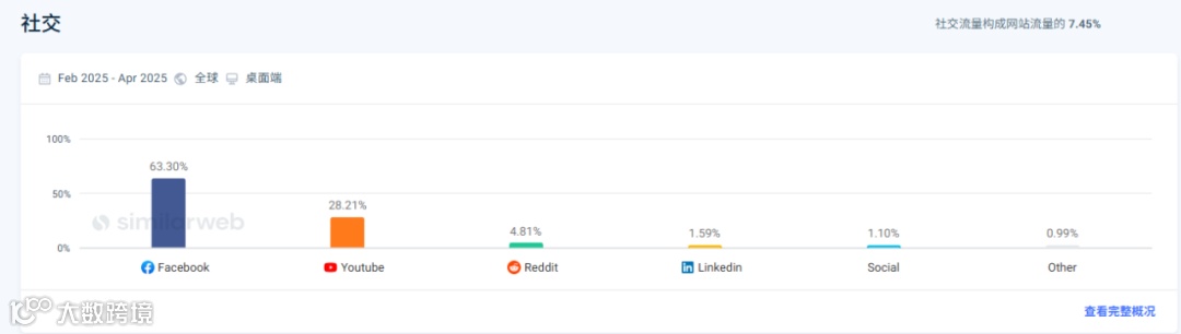 Yarbo依托跨境电商平台和社媒广告,实现精准流量获取。社交流量占比7.45%,其中Facebook和YouTube占据了大部分流量。从自然搜索和付费搜索的数据来看,品牌流量占据了91%。