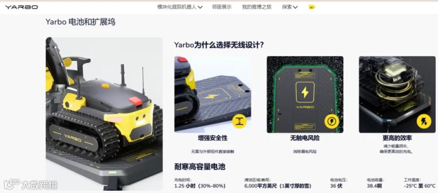 传统扫雪设备存在高耗时、高风险等痛点,Yarbo抓住这一空白,推出全球首款家用扫雪机器人Snowbot,主打-25℃极端环境下的稳定性能和6000平方英尺单次作业能力,精准击中用户需求。