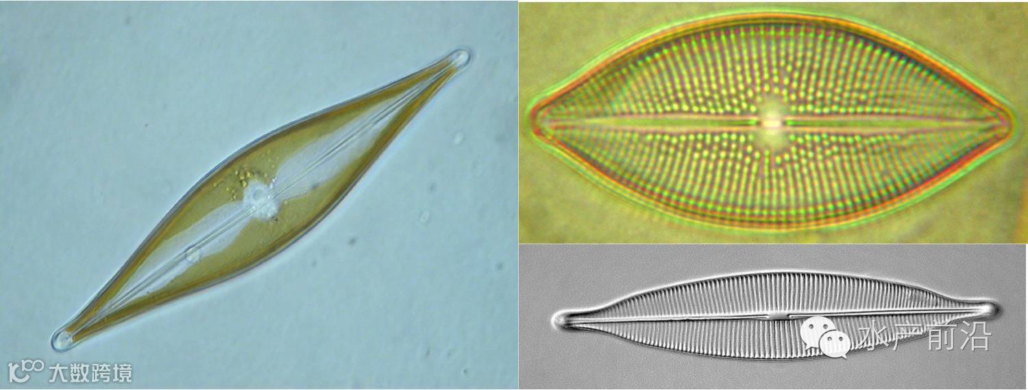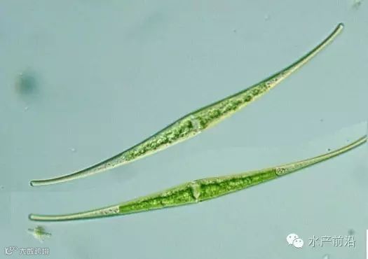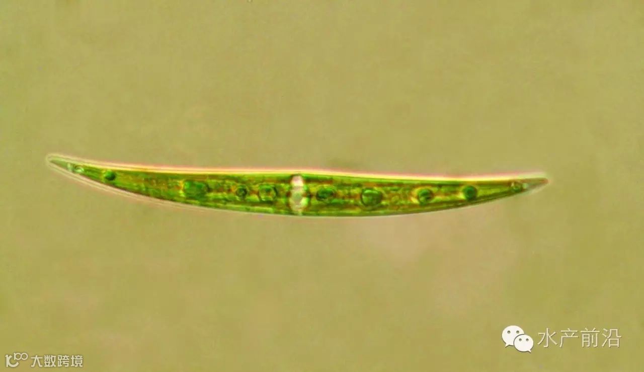 新月藻属(Closterium)为单细胞藻类,多数呈新月形,两端渐尖。细胞壁平滑或具纵向纹路,含铁盐沉积时呈黄褐色。细胞两端各有一大型液泡,内含石膏晶粒,在活体中持续颤动。