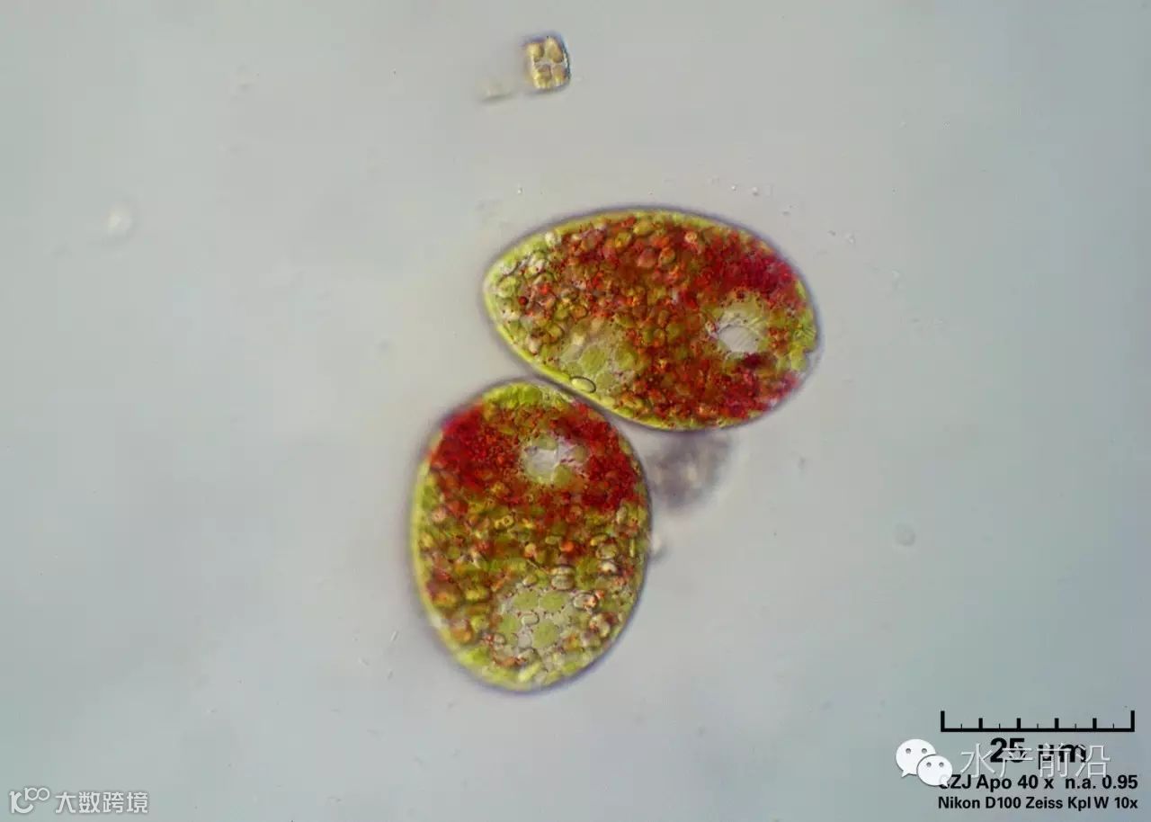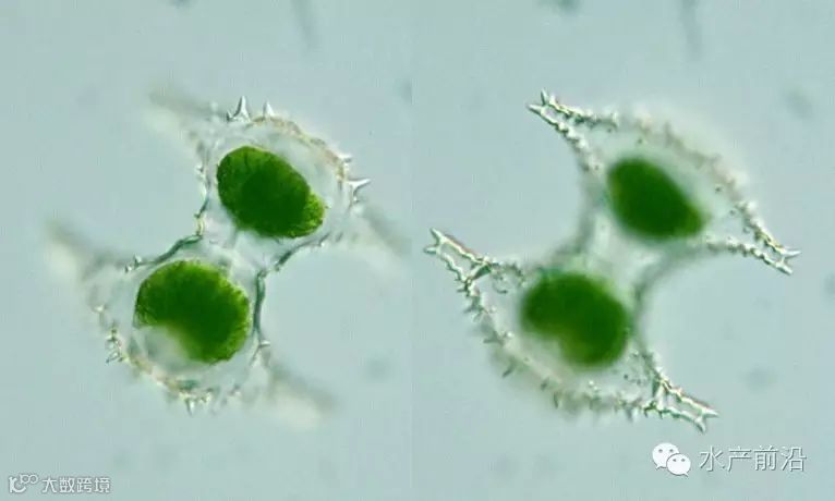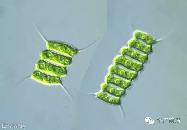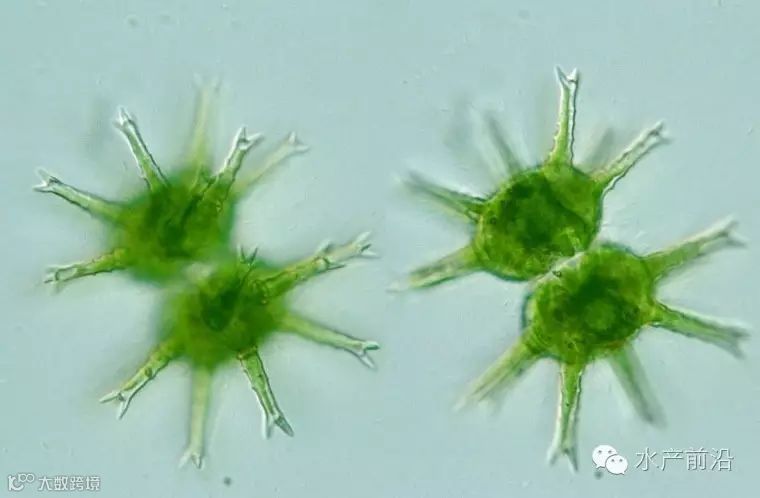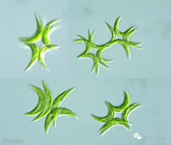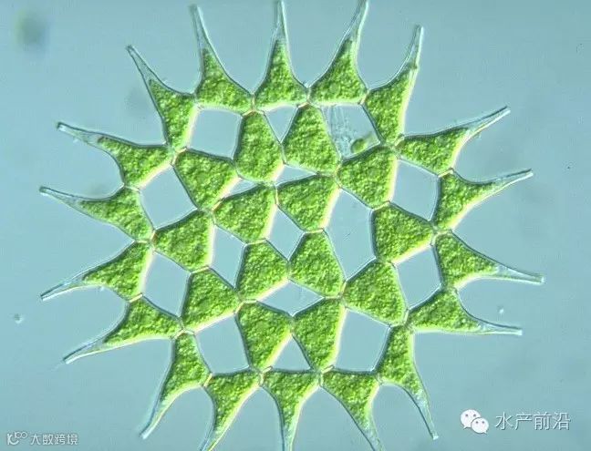 栅藻属(Scenedesmus)为淡水浮游常见种类,通常由2、4、8或16个细胞组成定形群体。细胞形态多样,如椭圆、卵圆、纺锤形等。广泛分布于池塘、湖泊、沟渠及培养缸中,繁殖快、营养价值高。