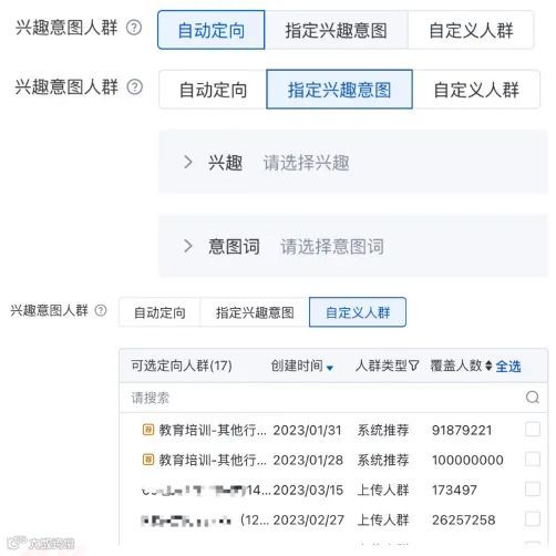 - 扩定向:建议按效果优先顺序配置定向策略——自动定向>意图词定向>商品定向>兴趣定向>人群包。