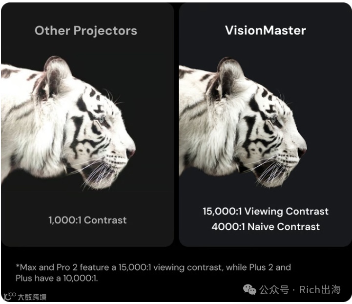VisionMaster Pro 2采用三色RGB激光光源,亮度高达3,000 ISO流明,支持110% Rec. 2020色域,提供高达15,000:1的对比度及Enhanced Black Level(EBL)技术,呈现出深邃的黑色与丰富细节,带来顶级视觉体验。