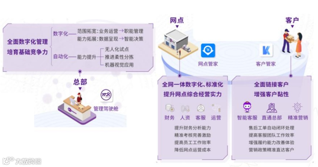在这之中,自从2019年4月起,潘水苗出任圆通速递总裁,推动快递全业务流程数字化管理。管理驾驶舱、客户管家、网点管家、运盟、行者等一系列数字工具,分别用于提升总部成本效率、营销效率、加盟商效率、干线运输效率和末端派送效率。