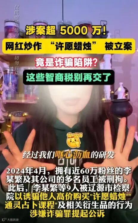 她以“通灵师”“命运导师”人设积累大量拥趸,主打一款售价高达7888元的“愿望蜡烛”。