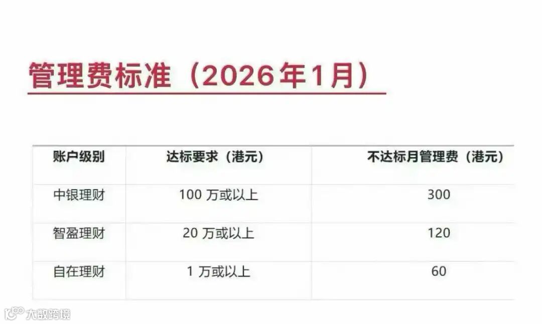 紧随汇丰,中银也在2026年1月开始收管理费。