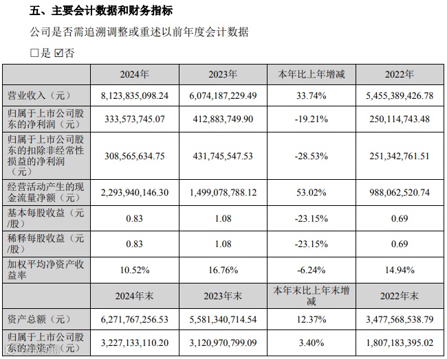 财报数据显示,致欧科技2024年全年营收为81.24亿元,同比增长33.74%。