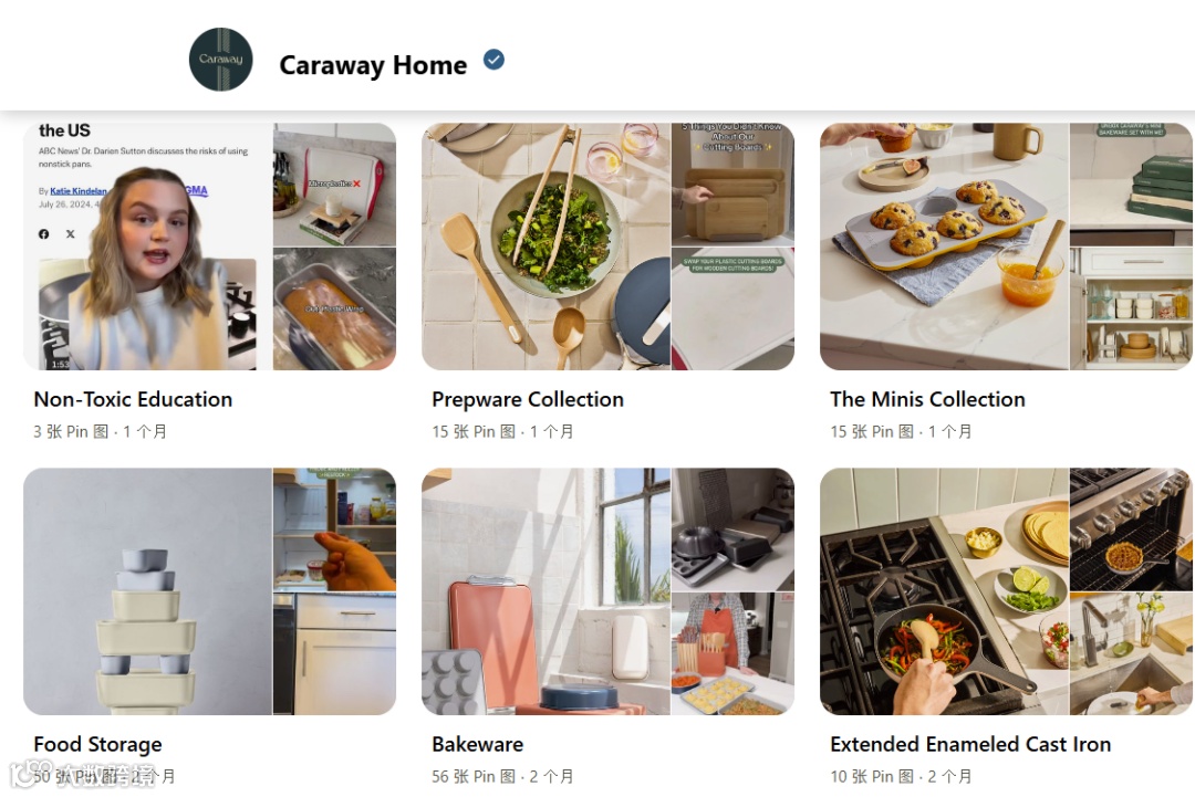Carway在Instagram账号上拥有45.6万粉丝,通过在Instagram、Pinterest创建视觉性营销,场景化内容布局与专业拍摄结合,发布厨房布置、美食制作、家居搭配等视频与图片,从视觉效果与生活美学上精准吸引关注,激发用户购买欲望。