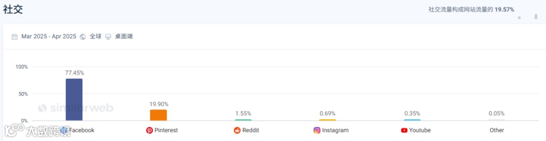Simlarweb数据显示,2025年3-4月,品牌独立站月访问量达200万次,其中,直接流量占20.43%,有机流量占29.83%,社交流量占44.08%。