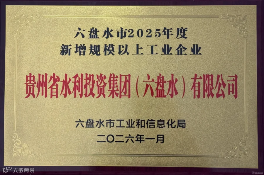 1月9日,六盘水市召开2026年全市大抓市场主体工作会议,对2025年度全市新增上规入库的“四上”企业及“大个体”给予表扬,贵州水投六盘水公司荣获六盘水市2025年度新增规模以上工业企业。