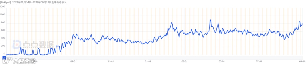 (Pokipet自上线以来收入量,数据来源:点点数据)