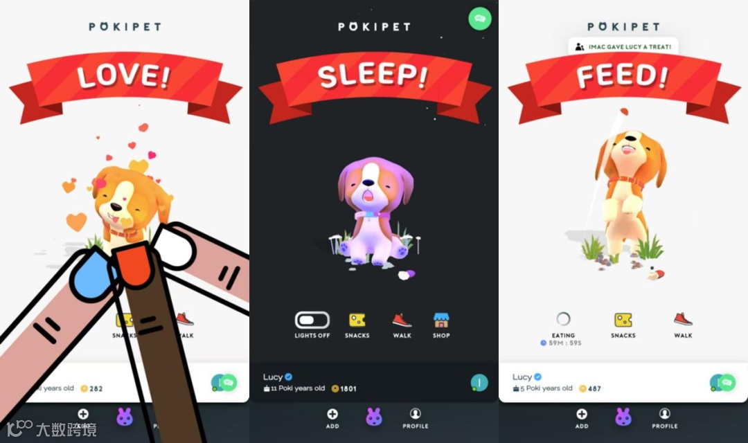 Pokipet将自己定义为“社交宠物游戏”,这里面涉及两个关键词,社交和游戏。