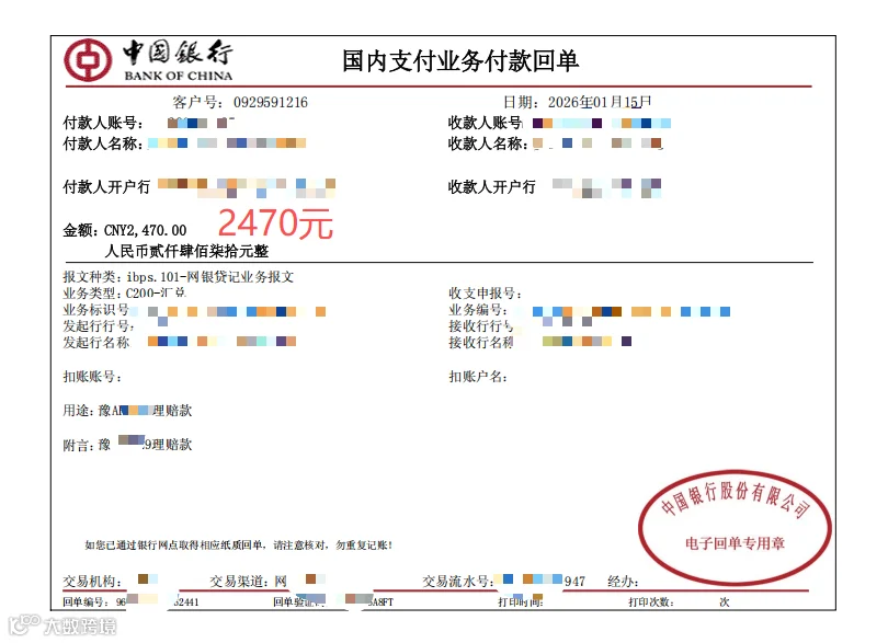 理赔打款