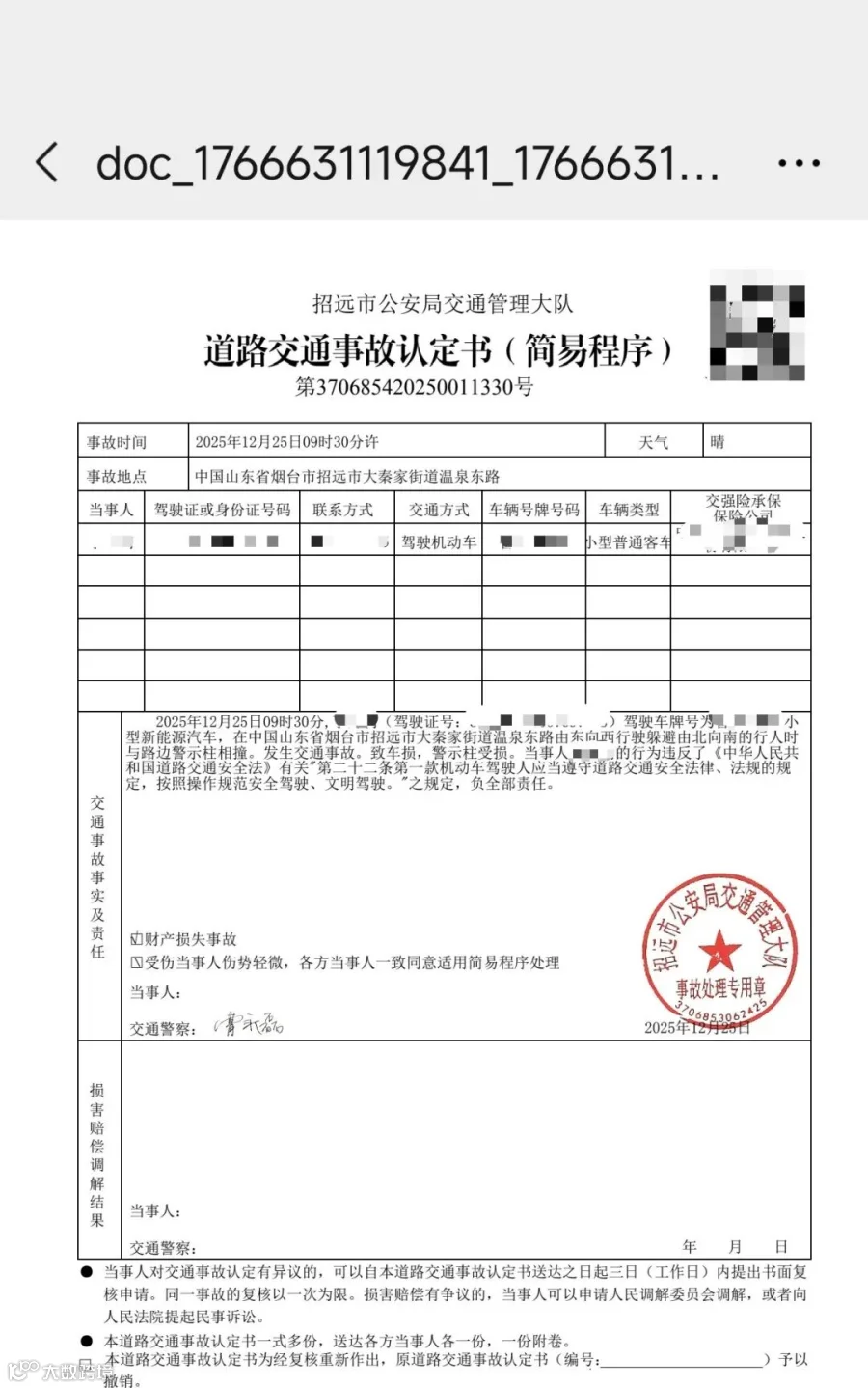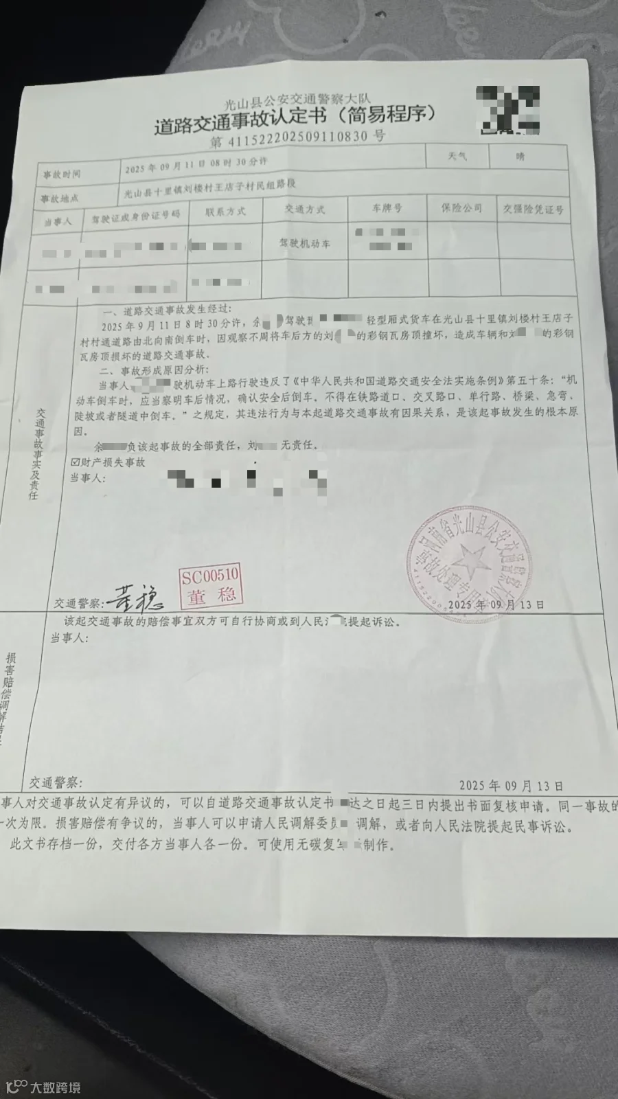 事故认定书