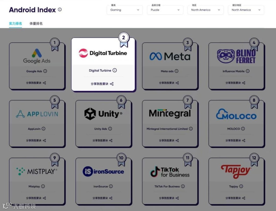 ,在 Puzzle、Match、超休闲等多品类赛道中表现亮眼——包揽了安卓北美地区 Puzzle 游戏实力&体量双榜单 TOP 2,于安卓 Match 榜单中稳居北美地区前 5。