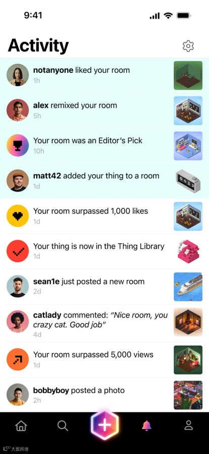 直观来说,Rooms就是通过想象力将一张白纸构建成绚丽多彩的立体图画应用,但其产品定位并不是一个普通的设计类应用,而是打造成了具备游戏属性的一个社交空间。