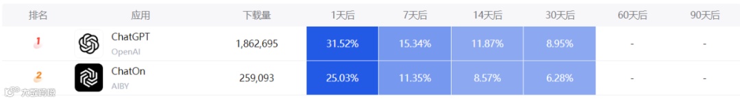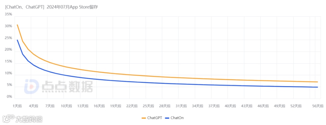这说明在提供类似的服务过程中,ChatOn对用户的吸引能力和用户维护表现已经趋近于头部产品。