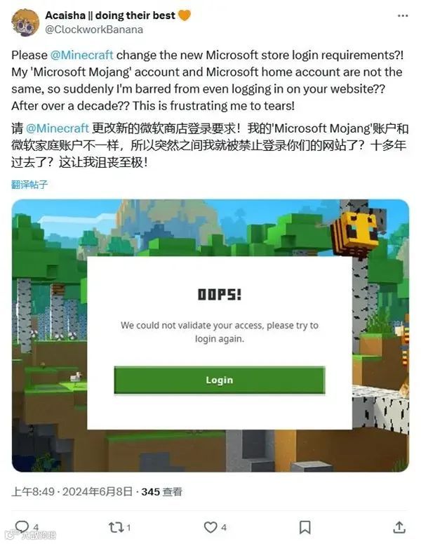 【《我的世界》游戏玩家怒斥微软:未迁移就被删号】6月14日消息,微软旗下游戏工作室Mojang Studios因账号迁移问题,再次遭到玩家怒喷。