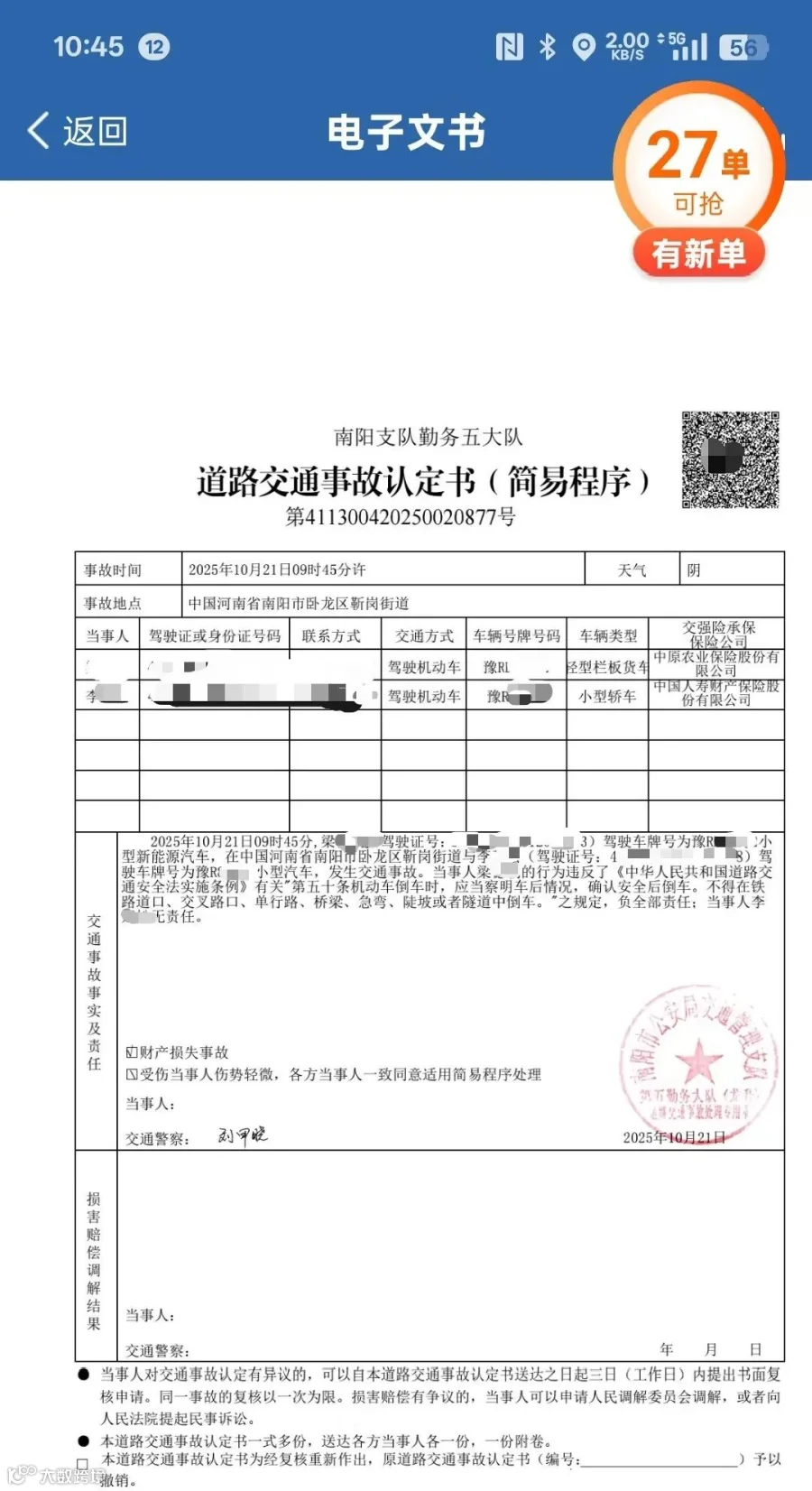 事故经过:2025年10月11日18时56分许,接郭**报警称,其驾驶贵GD**
