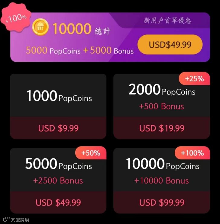 聚焦到商业化部分,SnackShort的付费模式采用了单集付费+APP内货币(PopCoins)充值+任务奖励+订阅制,主要依靠单集付费和订阅制盈利。据调查,其PopCoins礼包价格档位从9.99美元、19.99美元到99.99美元不等,解锁单集需要花费80个PopCoins,单部剧全集约100集左右,刨除看广告做任务获取的货币进行测算,看完一部100集短剧(前8集免费)大致需要充值49.99档位货币礼包。