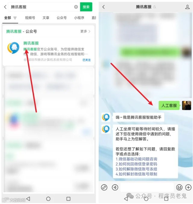 通过腾讯客服公众号联系人工客服