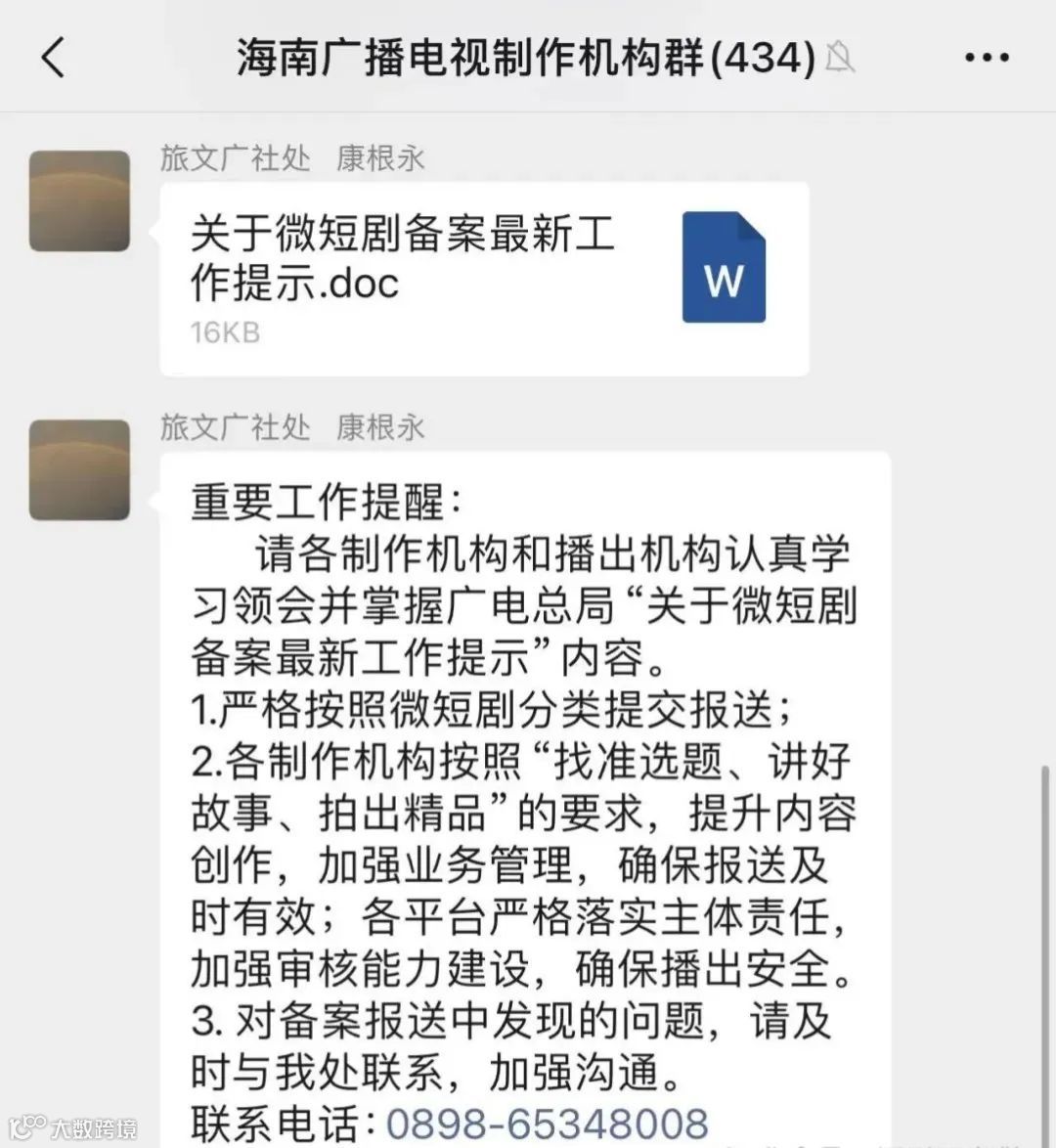目前,未经备案上线播出的微短剧,2024年5月31日前,各平台要将剧目相关信息,报所属地省级广电主管部门备案。从2024年6月1日起,未经审核且备案的微短剧不得上网传播。此外,文件中还特别强调:“不得通过拉高或降低投资额的方式躲避审查”。根据传统影视行业的经验,可以猜测,相关的微短剧制作备案应该也会提上日程。