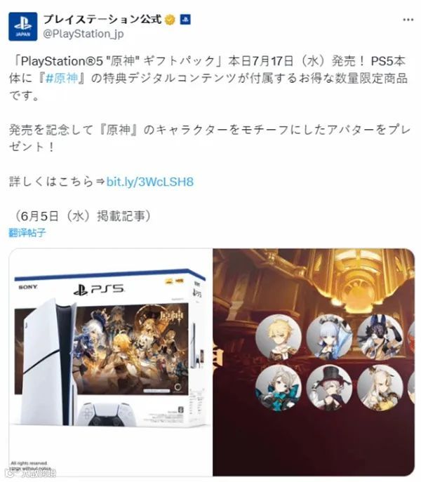 【《原神》PS5限量捆绑包现已在日本上市】索尼PlayStation日本近日宣布,此前曾官宣的《原神》PS5捆绑包现已正式在日本上市,建议零售价为66980日元(约合人民币3086元),且为限量发售。除此之外,为了纪念本次发售,索尼还将赠送《原神》角色主题头像。