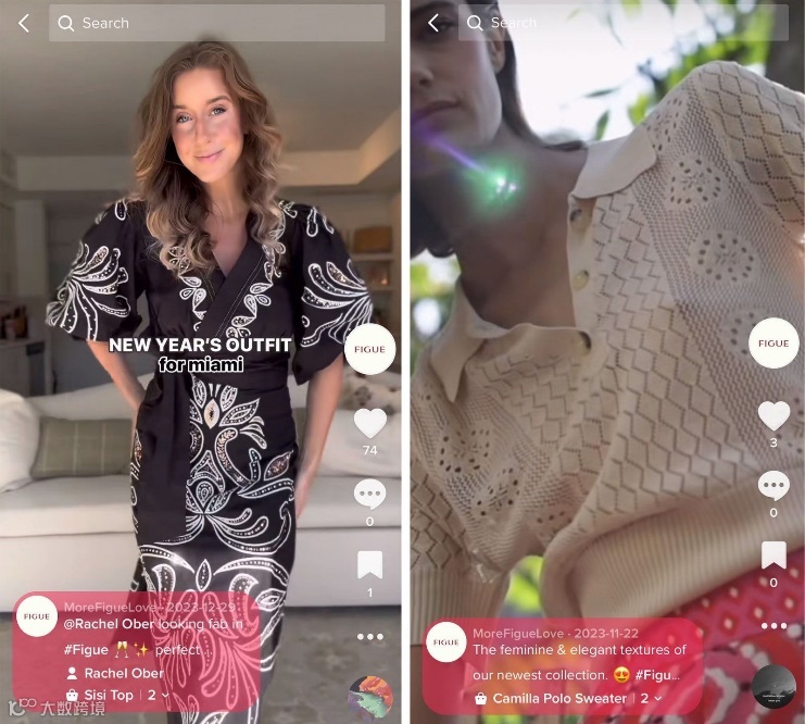 Figue 的社交总监泰勒·雅诺特在一次发言中提及,TikTok社交战略的一个重要部分就是,让受众了解其品牌在同质产品中脱颖而出的亮点。比如他们利用TikTok向用户展示了品牌的刺绣和各种配件,想让大家知道高定价的背后是高品质。即使用户们没有立即点击'购买'按钮,也能通过视频近距离看到其产品的精致细节。