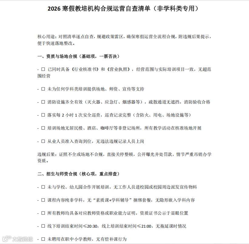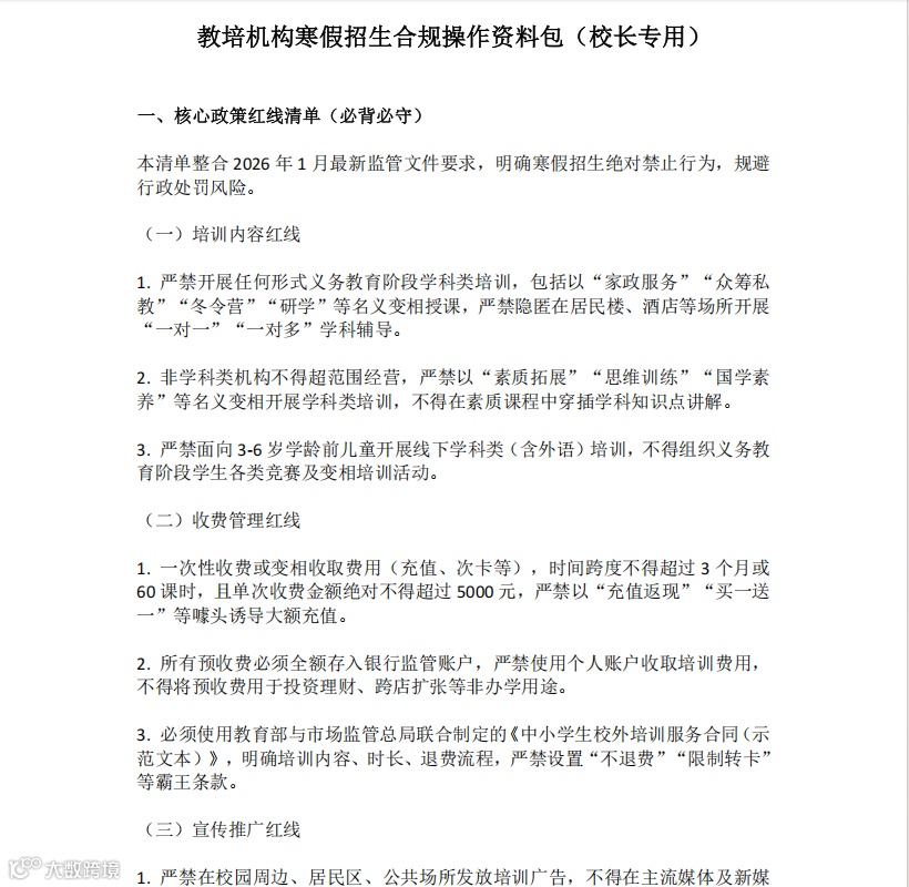 那些靠违规补课、虚假宣传生存的机构,迟早会被市场淘汰;而坚守合规底线、做好教学质量、打造差异化课程的机构,只会迎来更广阔的发展空间。