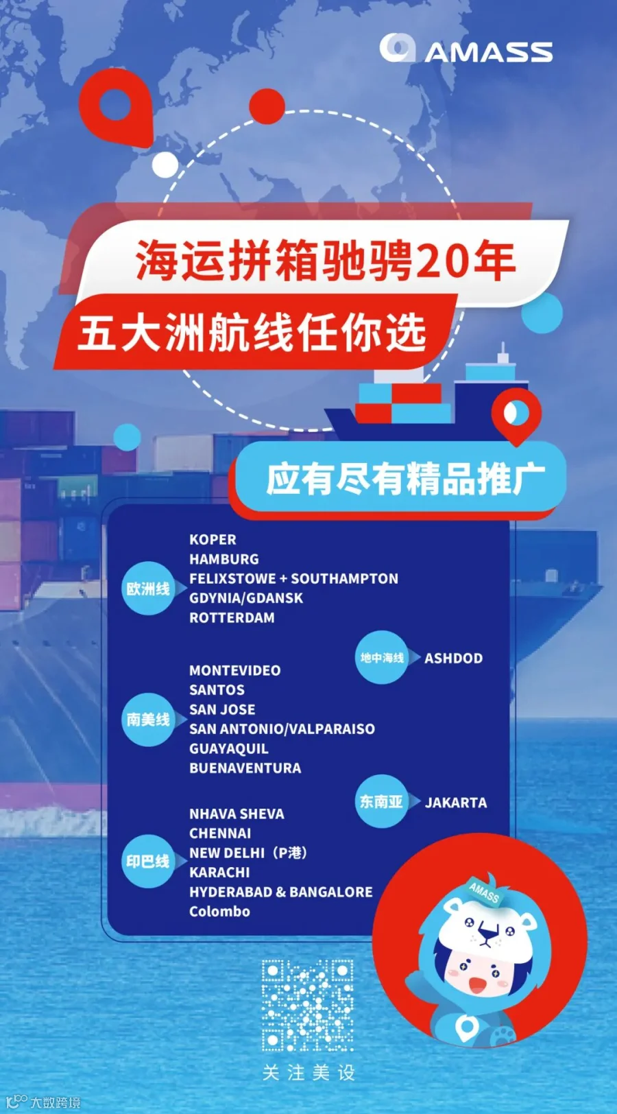 - 海运网络:直拼8大航线,覆盖48个港口,通达200多个国家、20,000个目的地;