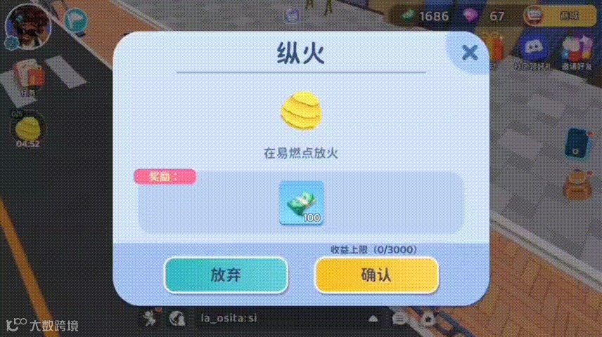 先从亮点部分来说,实际体验下,《Livetopia: Party!》的互动框架与《摩尔庄园》这类模拟游戏的设计更为相似,在Livetopia这座海滨城市中,玩家能够在开放的大地图上进行钓鱼、挖矿等社交互动,并且游戏还设计了职业系统、宠物陪伴系统、家园系统、装扮系统等。其中职业系统允许玩家体验囚徒、建筑工人、警察、赛车手等15个常驻职业以及一个临时职业(公交车司机),到相应NPC处领取任务后,玩家可以完成相应的“工作”来获取一定薪酬(游戏货币),比如囚徒需要一边逃开警察追捕一边在城市里放火或抢劫(甚至可以敲诈NPC)。警察身份则是需要抓捕这些坏蛋。完成不同职业任务后则能领取阶段性奖励,最终奖励为一辆代步工具。