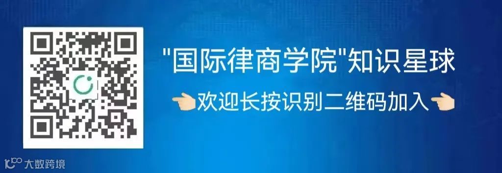 “国际律商学院”知识星球是专注于国际法律、合规与商务实务的专业知识共享平台、实务学习交流平台、实务问答互动社区、和涉外法律数据库。在线实务问答,获取海量学习资料,参与打卡培训,加入微信交流群,获取更多法律实务干货、中英文合同模板、重大文件及翻译文本、深度研究报告、国别法律指引、法律风险预警、VIP会员特权等,欢迎长按或扫描下面二维码加入我们的“国际律商学院”知识星球!