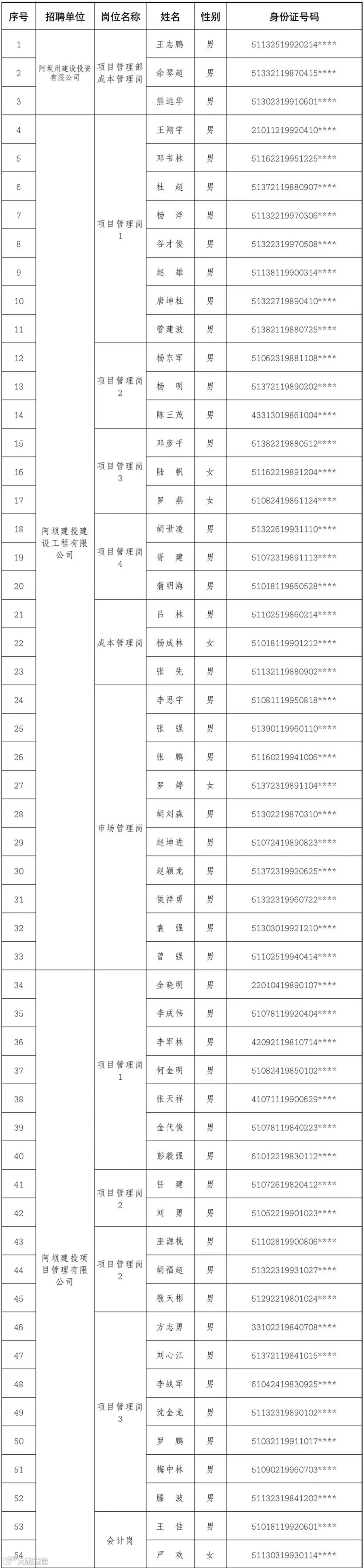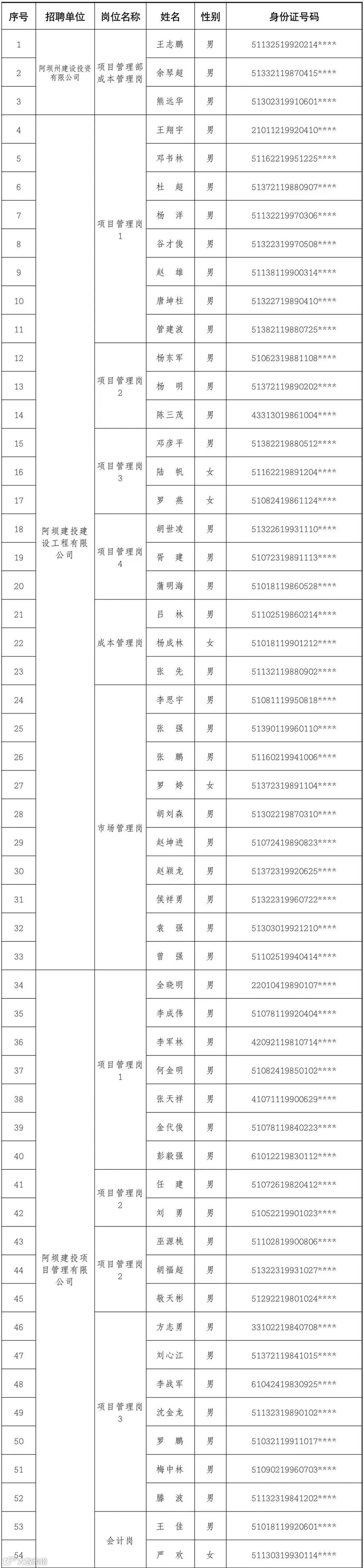 附件:阿坝州建设投资有限公司公开招聘进入资格复审人员名单