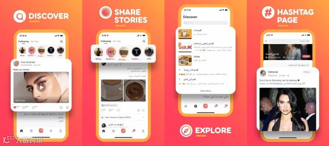 当时的Beeto定位同样是做一款“集大成者”的产品,在融合了Facebook、Instagram和Twitter等头部社交媒体功能的基础上,Beeto还添加了“热搜”、广场、话题等功能,给当时的中东市场带来了新的冲击。