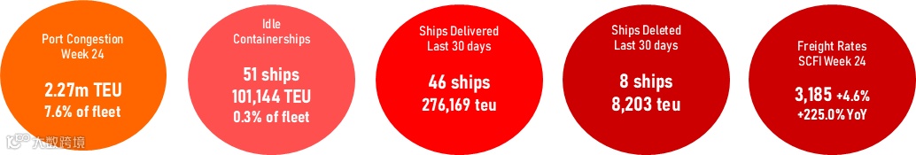 市场需求强于往年,6月下半月运价再度上涨(每40尺柜增加1500-2000美元),推动力除消费需求外,还包括企业因交货周期延长而提前备货及抢舱位。