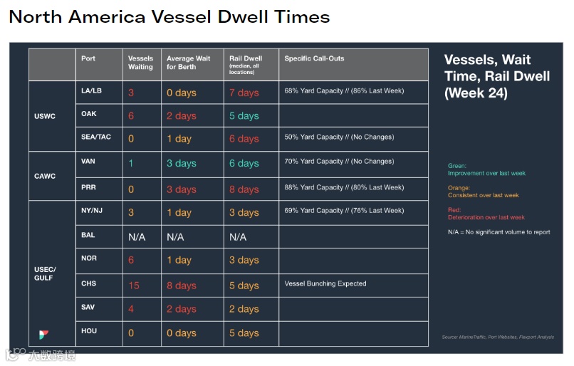 现货运价:6月各项普遍涨价均已落地,基于6-7月旺季状况,各东向门户将实施新一轮调价。 carriers 预计短期内涨价将持续且加速,亚洲出发船舶基本满载:西南航线已满,西北航线接近满舱。