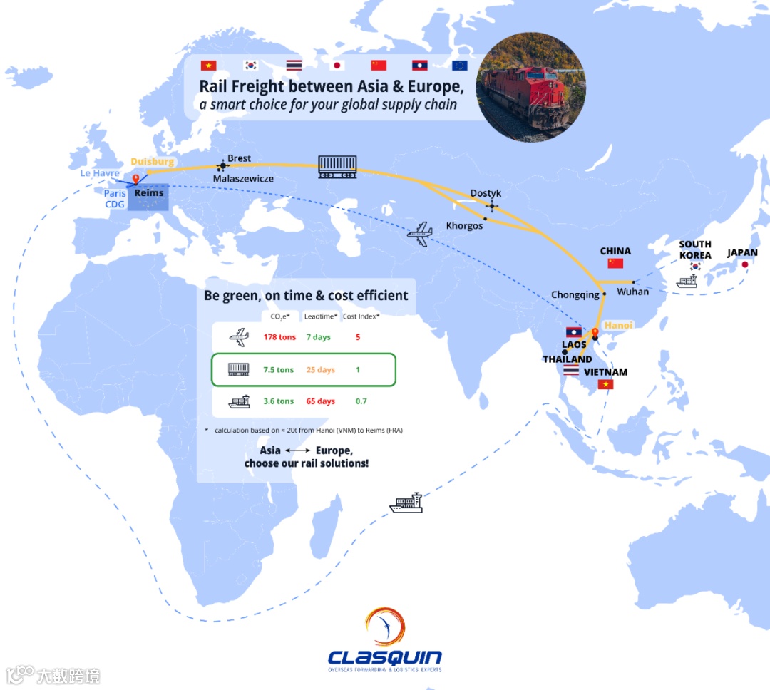 铁路运输兼具灵活性与可靠性,在供应链紧张时期尤为重要。目前中欧铁路服务已扩展至越南、泰国、老挝、韩国、日本、中国大陆及中国台湾等多个亚洲地区,成为集绿色环保、准点率高与成本可控于一体的优质货运选择。