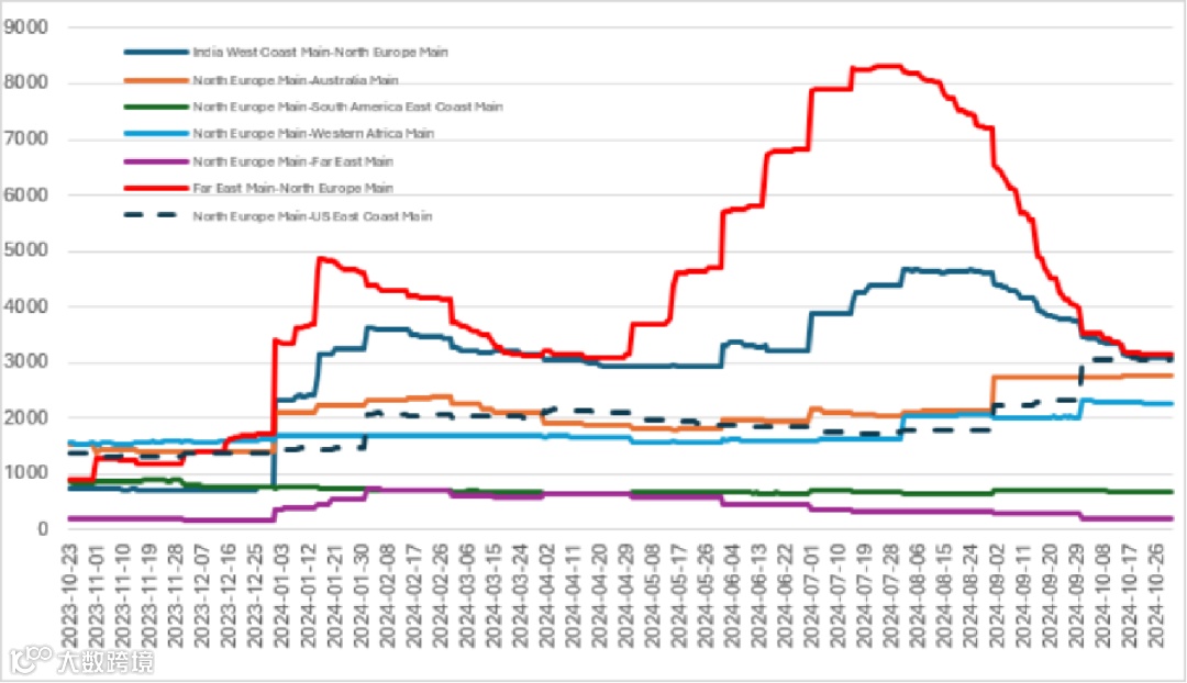 ILA已设定2025年1月15日为码头自动化谈判最后期限,若未达成协议,可能再次发起罢工,加剧市场不确定性。叠加美国大选临近,北美进口需求提前释放,推高当前运价压力。