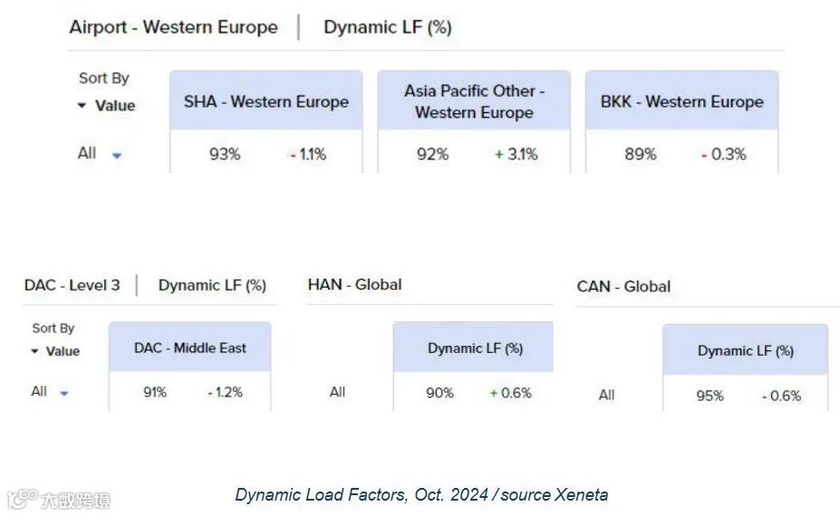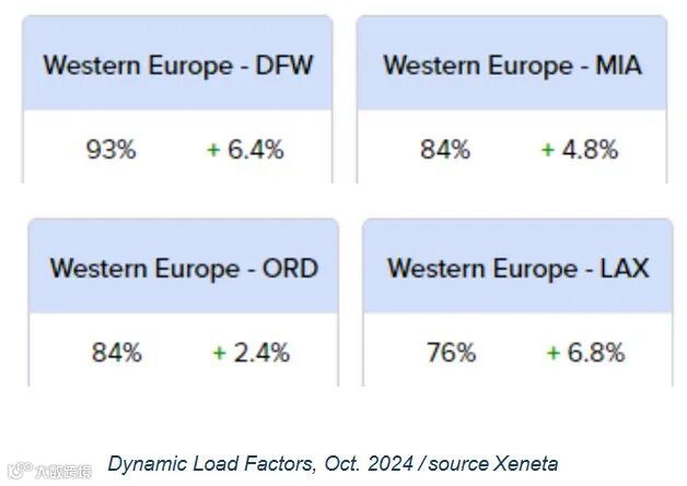 香港、上海、曼谷、河内等主要机场运力趋于紧张,亚洲核心经济枢纽航班载客率已超90%。受红海局势影响,孟加拉国、印度等地海运时效延长,部分货流转向空运。建议从亚太进口的企业尽早下单,锁定舱位。