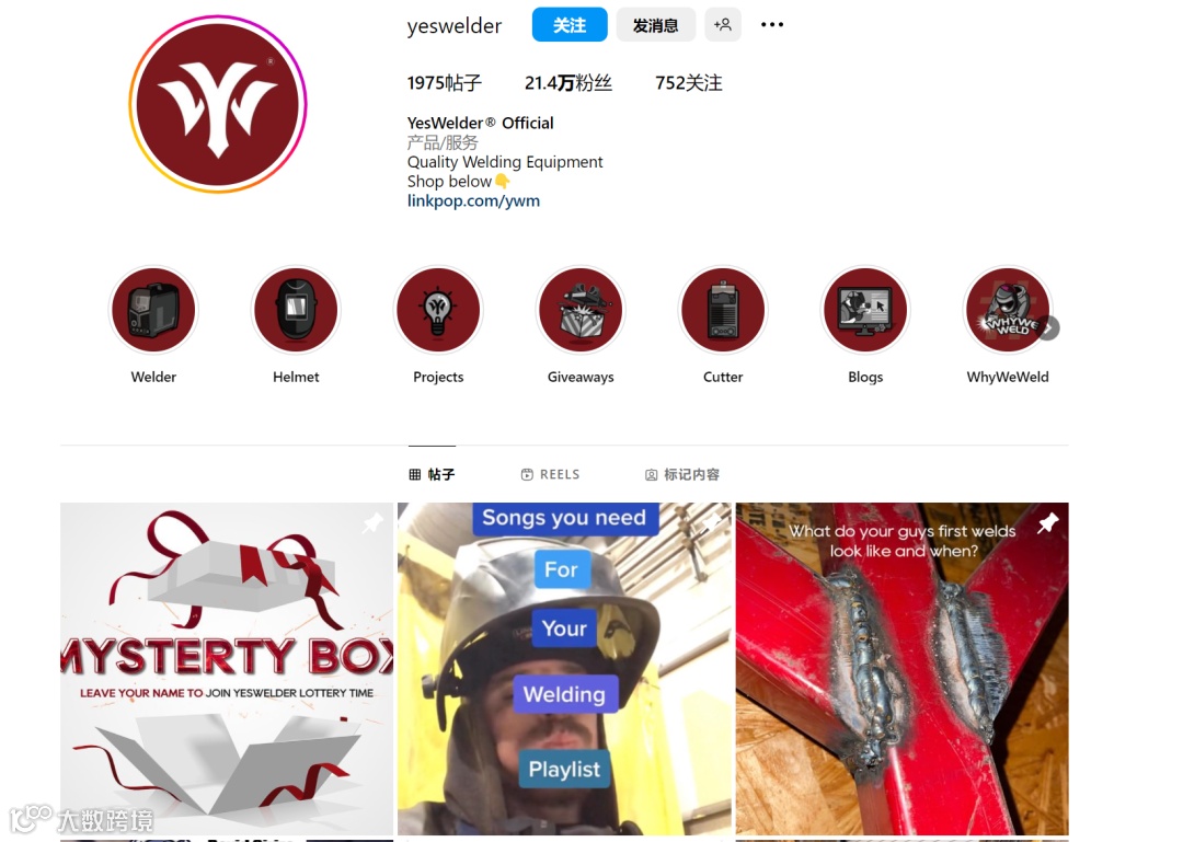 据了解,Yeswelder开设了多个社交账号,包括但不限于Facebook、Twitter、Pinterest、Instagram、Tik Tok、YouTube。