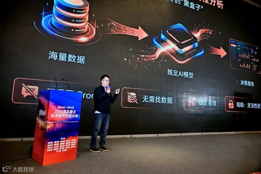 卖家精灵产品负责人王浩以“AI出海进阶:从‘对话框’到‘智能体生态’”为主题,展示AI技术在市场调研、产品研发、运营推广等环节的应用升级,推动企业智能化转型。