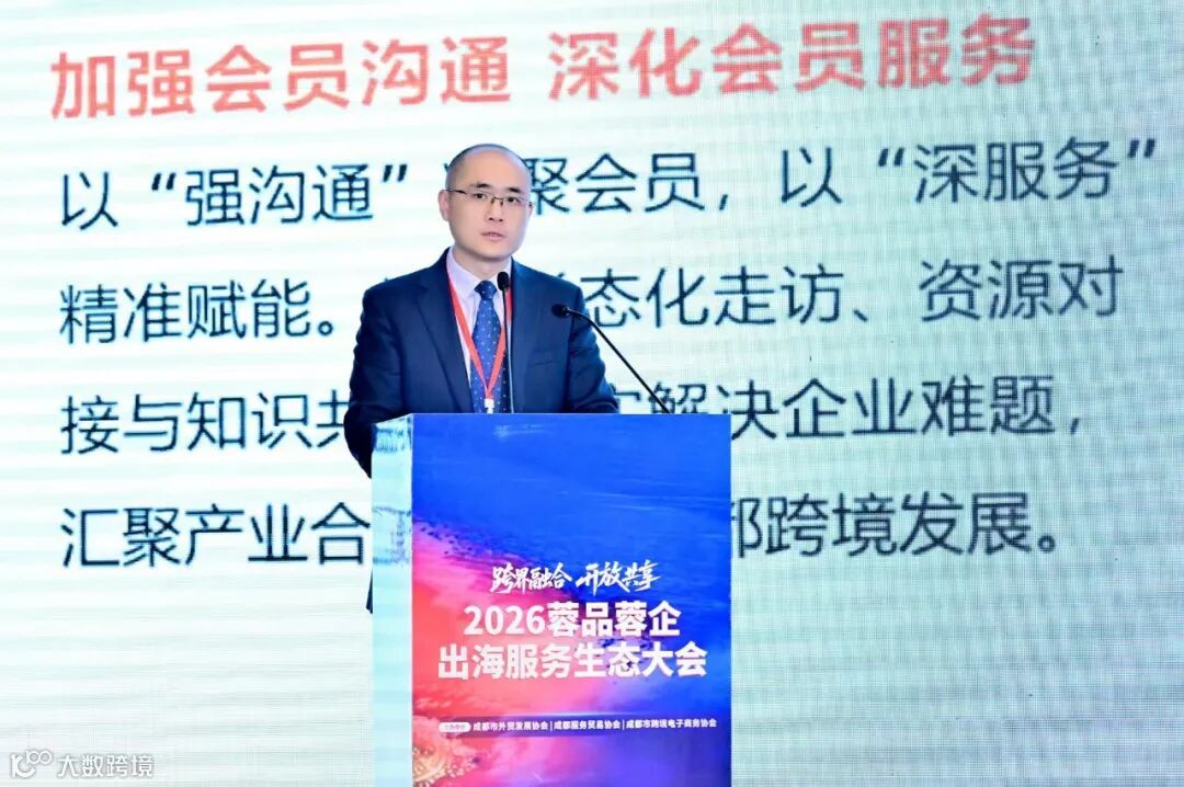 成都市跨境电子商务协会秘书长吴悦全面回顾了协会2025年在党建引领、双向贸易、产教融合、行业交流、招商引资等方面的重点工作,并发布2026年度发展规划,明确协会未来发展方向。
