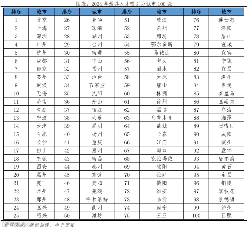 中国最具人才吸引力城市TOP100:京沪深领衔,长三角珠三角集聚明显