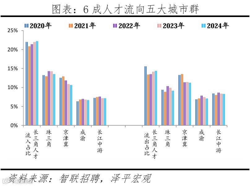 人才流动趋势:东部持续集聚,六成流向五大城市群