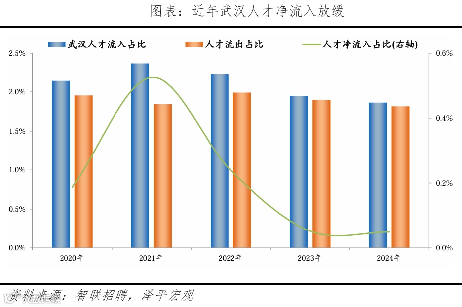 武汉:2024年人才净流入占比0.05%,延续净流入趋势。“百万大学生留汉”工程成效显著,近八年留汉大学生超200万。落户接近“零门槛”,2024年新增就业21.9万人,离校未就业毕业生帮扶率超90%。