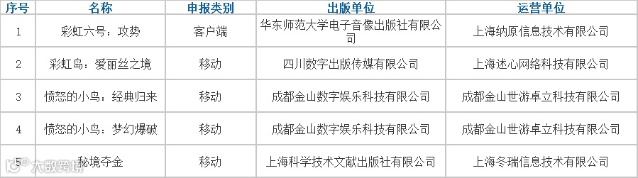 此次共5款进口游戏通过审批,其中包括4款移动游戏和1款客户端游戏。