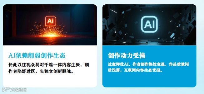 创作者们不再愿意花时间和精力去深入思考和研究,而是依赖于人工智能提供的便捷,这种依赖性不仅影响了他们的个人成长,也对整个创作生态产生了负面影响。