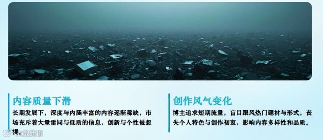 长此以往真正有深度、有内涵的优质内容会越来越少,取而代之的是大量同质化、低质量的内容泛滥。