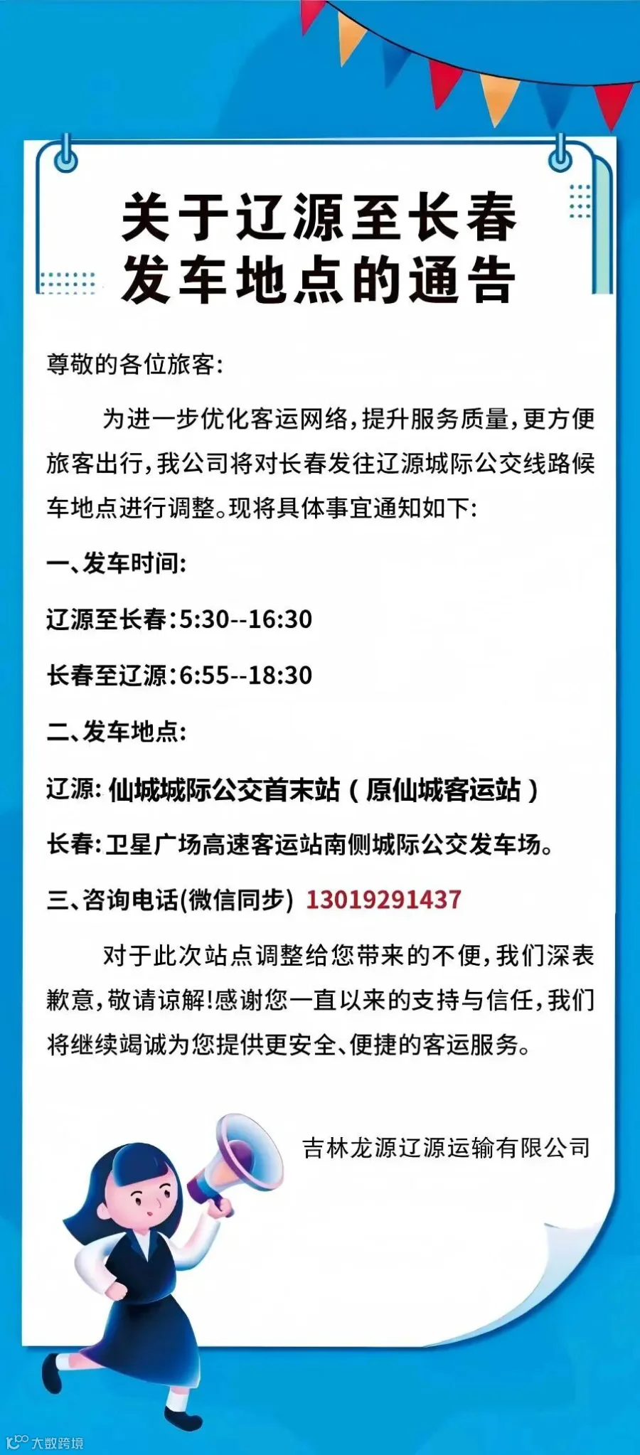 关于辽源至长春发车地点的通告