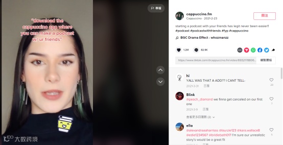 本次要介绍的主角是一款音频播客产品Cappuccino(FM)。2020年5月正式发行的半年内,Cappuccino并未收获太多反响。但在2021年2月,一条TikTok视频让它登上了美国应用总榜,在部分人中流行起来。